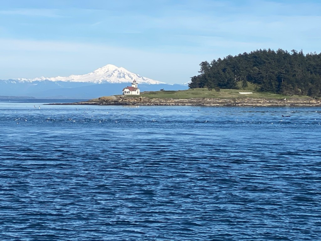 We saw a humpback earlier in the trip off Galiano Island. Then my crew spotted the T36As and T99B off Patos Island Light on our way back to Anacortes. We were one of the fewvboats to find orcas today in the Salish Sea. And that view of Mt. Baker never gets old.
