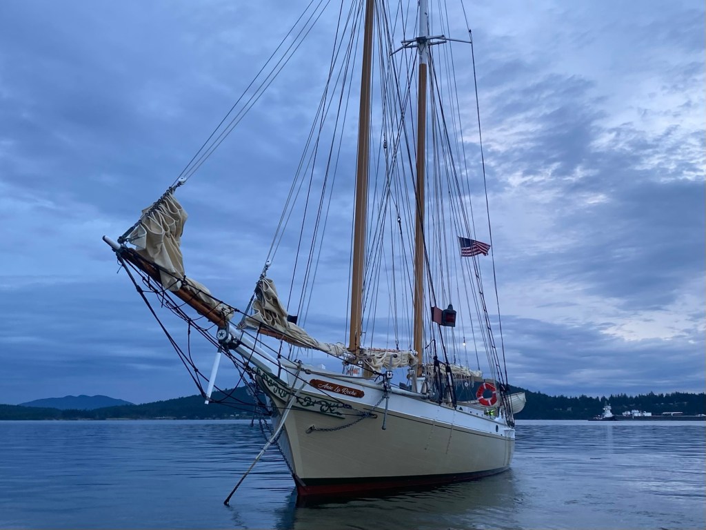 The Admiral and I enjoyed a delightful evening aboard Schooner Anse La Roche with Captain Kevin of Sail Anacortes. It was pleasantly calm in Fidalgo Bay. Clouds to the west obscured sunset, but the moonrise to the east was spectacular. Good conversation with the captain and fellow passengers. If you’re visiting Anacortes, this sunset sail is a must. And if you’re a local who hasn’t sailed aboard Anse La Roche, you don’t know what you’re missing.